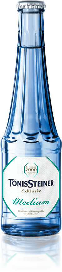Zu trockenen, halbtrockenen und gereiften Weißweinen wie z. B. Riesling oder Chardonnay bietet sich ganz besonders unser TönisSteiner Exklusiv Medium an. Mit 5,0 g eigener Quellkohlensäure in Kombination mit dem natürlichen Gehalt an Hydrogencarbonat und der ausgewogenen Mineralisierung bleibt der Weingenuss unverfälscht erhalten. Jeder, der zu Rotwein und jungen, frischen Weinen ein kohlensäurehaltiges Mineralwasser bevorzugt, wird mit unserem TönisSteiner Exklusiv Medium eine gute Wahl treffen.